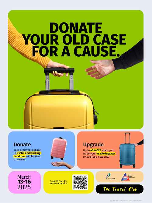 The Travel Club is once again rolling out its Donate Your Old Case for a Cause, an initiative, happening from March 13 to 16, 2025, at SM Mall of Asia, Eastwood Mall, and Estancia Mall. This program allows customers to trade in their pre-loved but still usable luggage and bags in exchange for up to 40% off on select travel gear.